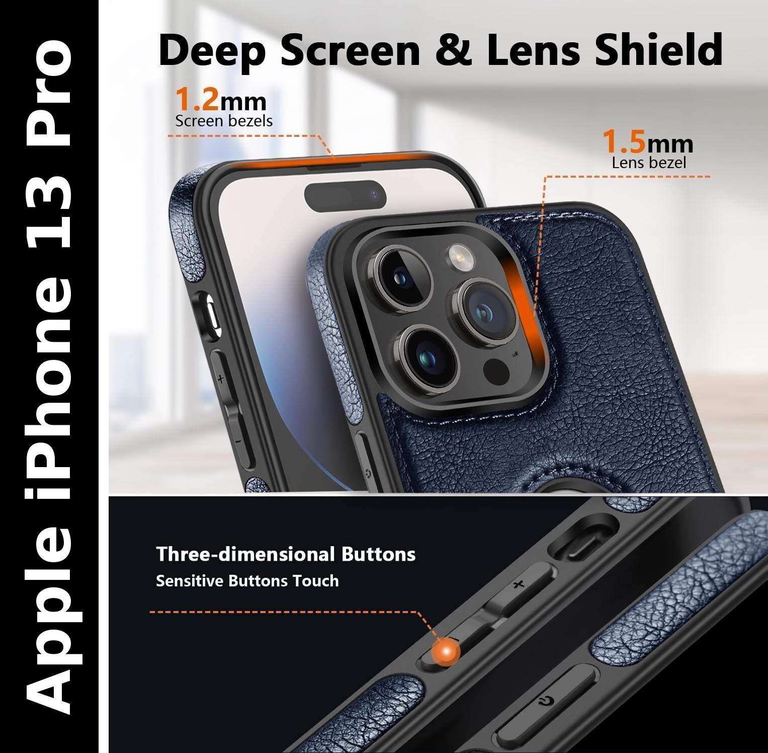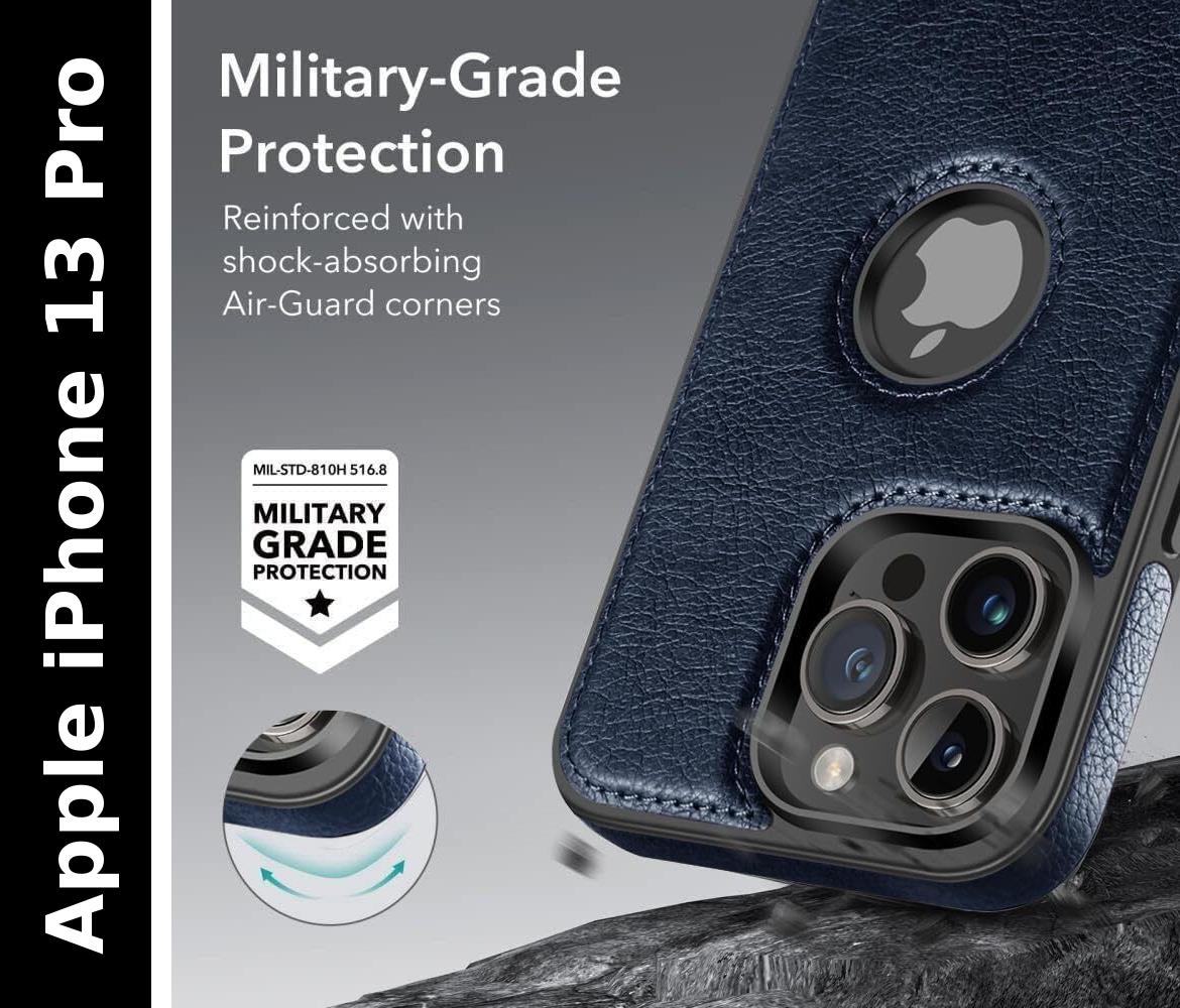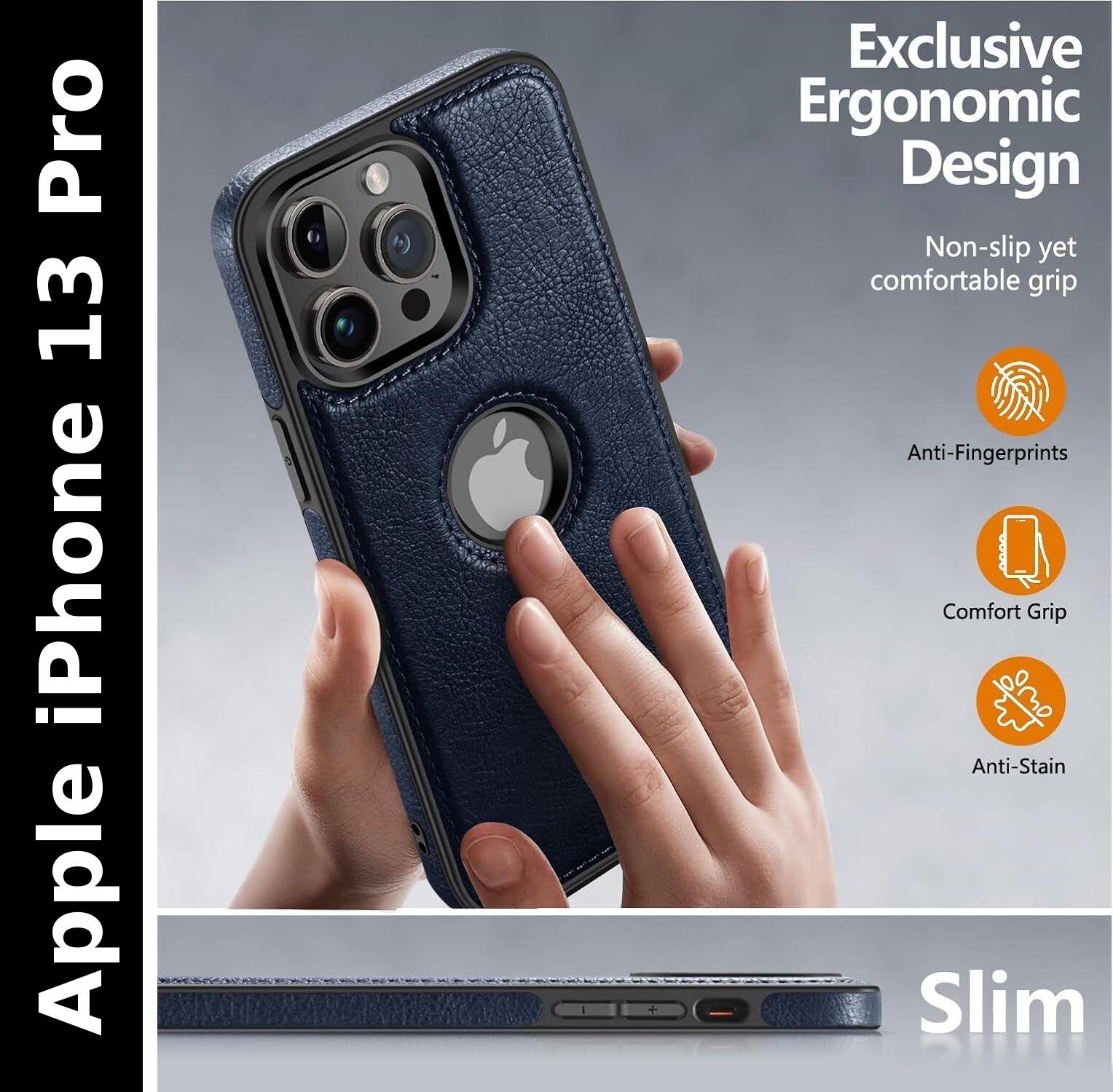 Premium Design and Style Upgrade your smartphone protection with this Premium PU Leather Back Cover for iPhone 13 Pro , available in classic Blue and sophisticated brown. It combines style, durability, and everyday comfort through a high-quality flexible PU leather construction. Whether you are looking for a sleek professional look or a stylish accessory for daily use, this case is designed for all lifestyles—office, casual, or travel—and is a perfect fit for men, women, boys, and girls. Shock-Resistant Protection The slim yet durable design safeguards your phone from scratches, minor drops, dust, and fingerprints without adding unnecessary bulk. To ensure your device stays in pristine condition, the soft inner lining prevents surface scratches, while the textured exterior provides a secure, anti-slip grip. This combination of premium materials offers reliable protection against daily wear and tear, making it an excellent choice for personal use or as a thoughtful gift. Functional Precision Engineered for convenience, the precise cut-outs allow easy access to all buttons, ports, speakers, sensors, and the camera. You can charge your device, listen to music, and use side buttons effortlessly without ever needing to remove the case. This functional design ensures your iPhone 13 Pro remains fully accessible and protected, blending seamless utility with a premium aesthetic.