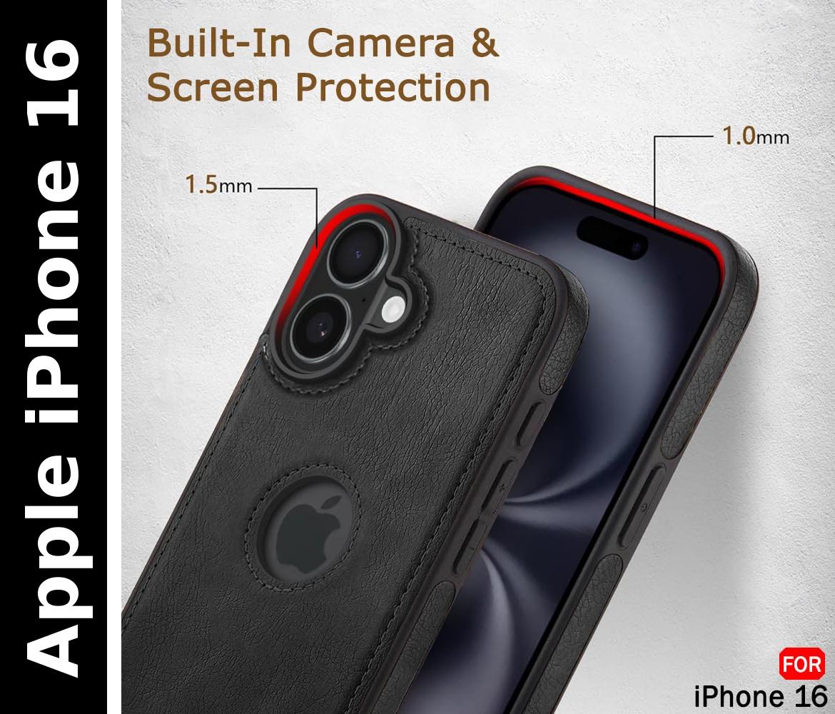 Premium Design and Style Upgrade your smartphone protection with this Premium PU Leather Back Cover for iPhone 16 , available in classic Black and sophisticated brown. It combines style, durability, and everyday comfort through a high-quality flexible PU leather construction. Whether you are looking for a sleek professional look or a stylish accessory for daily use, this case is designed for all lifestyles—office, casual, or travel—and is a perfect fit for men, women, boys, and girls. Shock-Resistant Protection The slim yet durable design safeguards your phone from scratches, minor drops, dust, and fingerprints without adding unnecessary bulk. To ensure your device stays in pristine condition, the soft inner lining prevents surface scratches, while the textured exterior provides a secure, anti-slip grip. This combination of premium materials offers reliable protection against daily wear and tear, making it an excellent choice for personal use or as a thoughtful gift. Functional Precision Engineered for convenience, the precise cut-outs allow easy access to all buttons, ports, speakers, sensors, and the camera. You can charge your device, listen to music, and use side buttons effortlessly without ever needing to remove the case. This functional design ensures your iPhone 16 remains fully accessible and protected, blending seamless utility with a premium aesthetic.