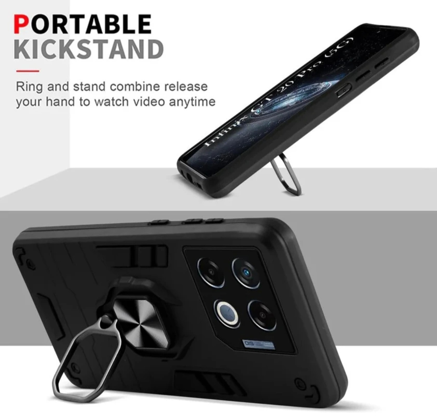 • 360 DEGREE PROTECTION: This Sturdy Armor Case has a Rugged Construction which provides the phone All-Round Protection. Raised Lips on Front & Back provide Proper Camera & Screen Protection. • RING HOLDER: Innovative Ring Holder Design is Highly Adjustable which allows you to hold phone with Extreme Ease & Comfort. • IN-BUILT STAND: The Inbuilt Stand Provides you a Handsfree Experience while watching any Movie or Video Content. • METAL PLATE INSIDE: A High-Density Metal Plate is Installed in this case which makes it Compatible with that Magnetic Car Holder in your Car.